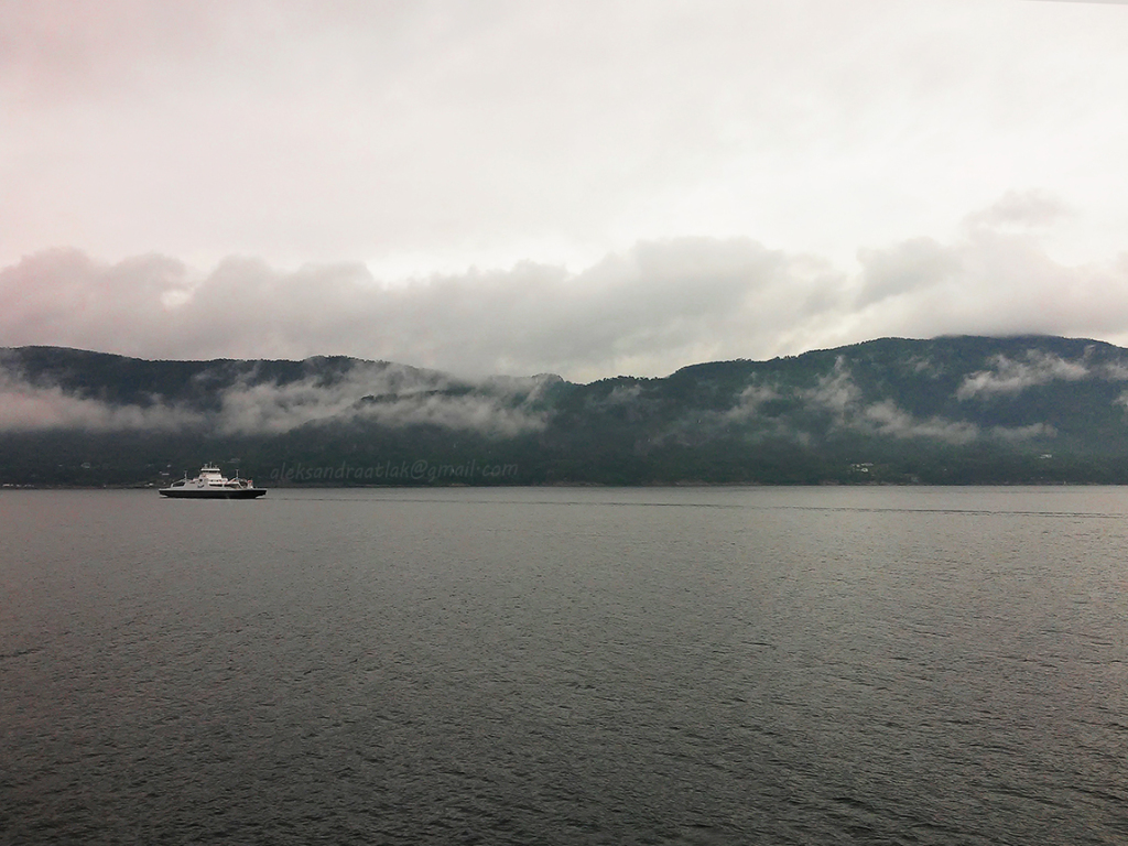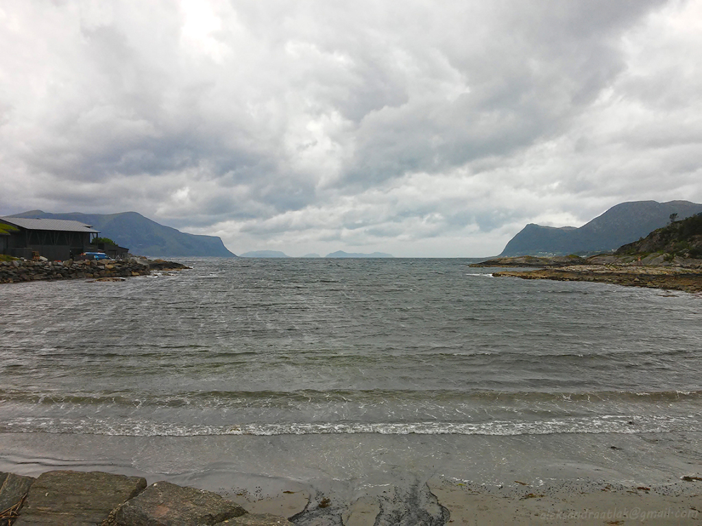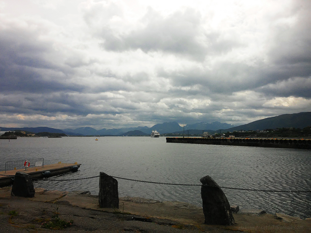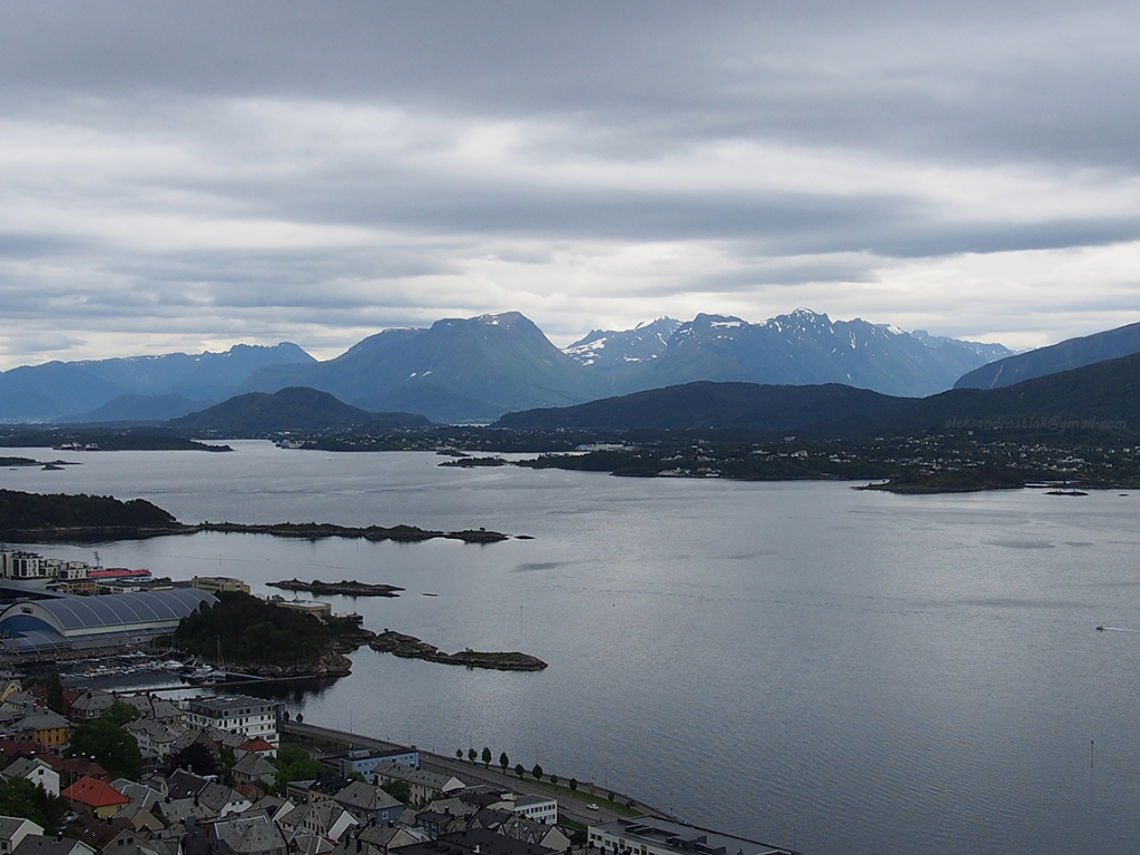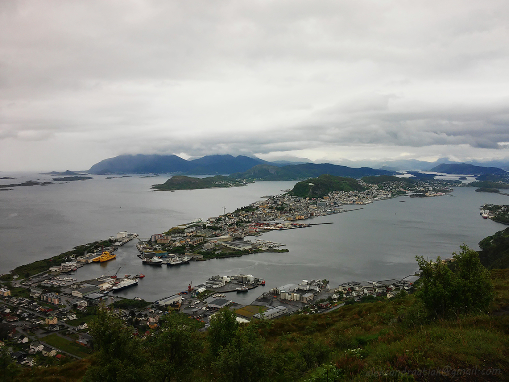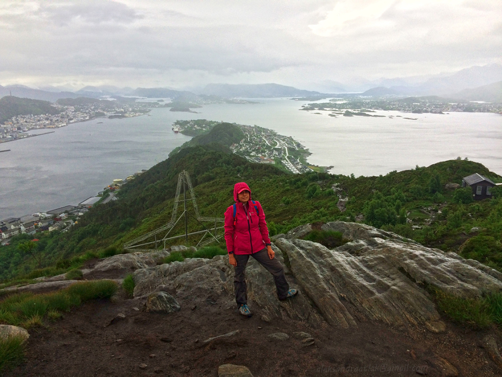 Mimo przelotnych opadów decyduje się na relaksacyjny trekking po wzgórzu, które jest miejscem "niedzielnych" spacerów miejscowych. Po zejściu ze szlaku, robię szybkie zakupy i udaje się do mieszkania. UWAGA!!! (Rybne specjały są tańszę niż w Polsce. W centrum miasteczka, przy stacji benzynowej, znajduje się sklep "Fisketorget", gdzie kupisz świeżą rybę. Godz. otwarcia sklepu na stronie http://www.fisketorget-aalesund.no. Alkohol w sob.kupisz tylko do 18:00, w tygodniu do 20:00.)