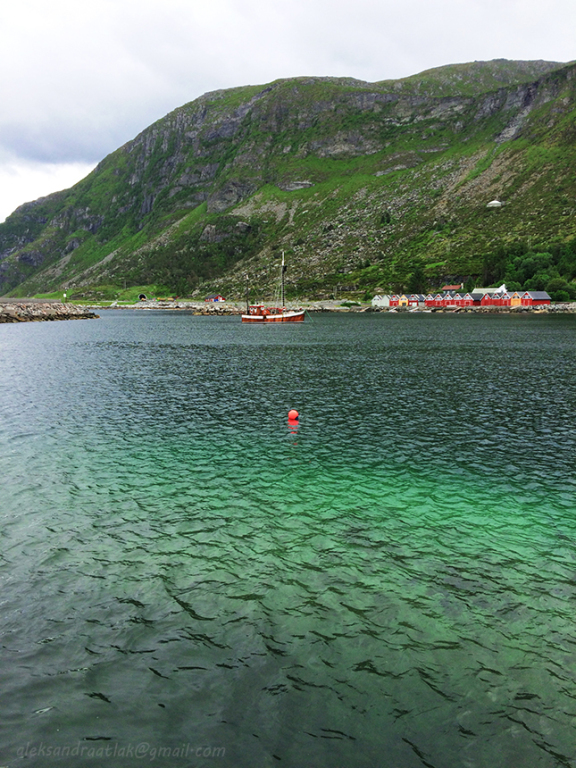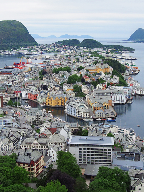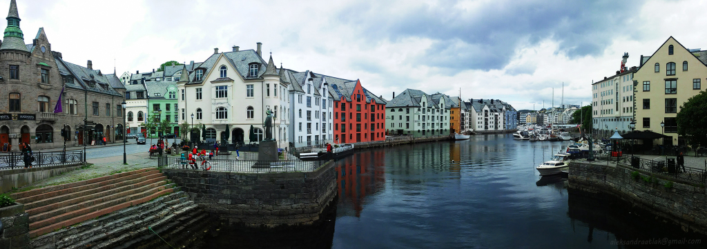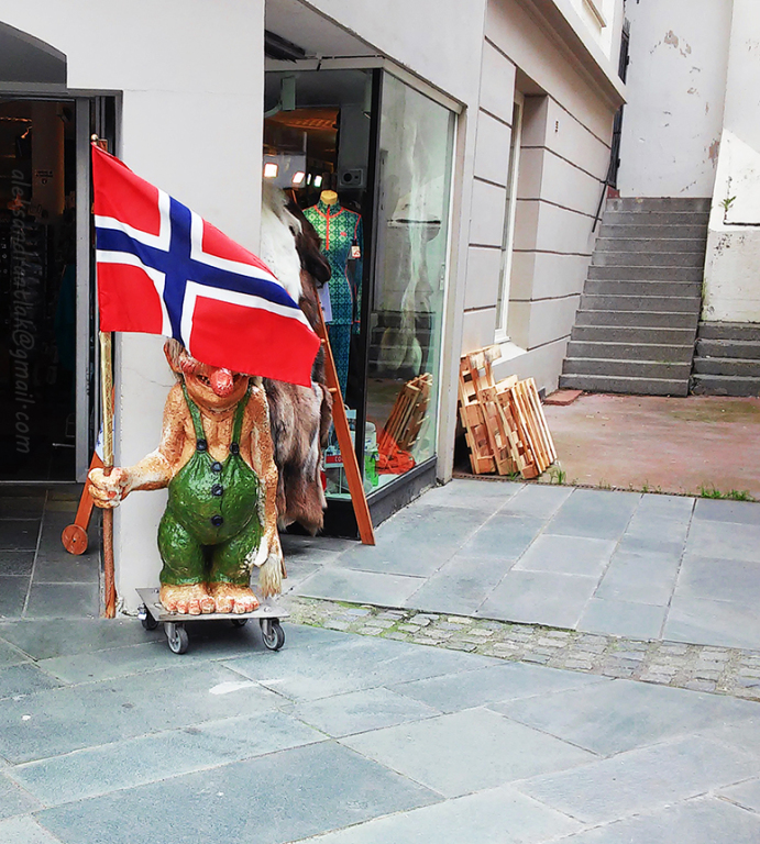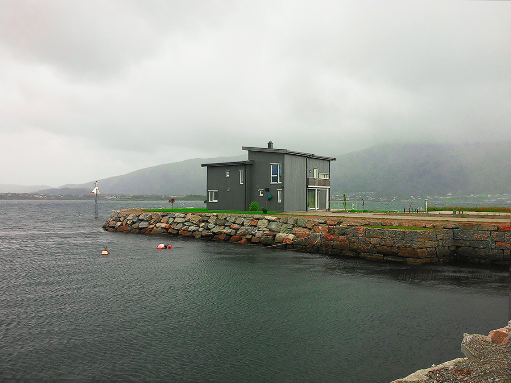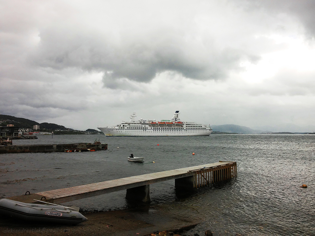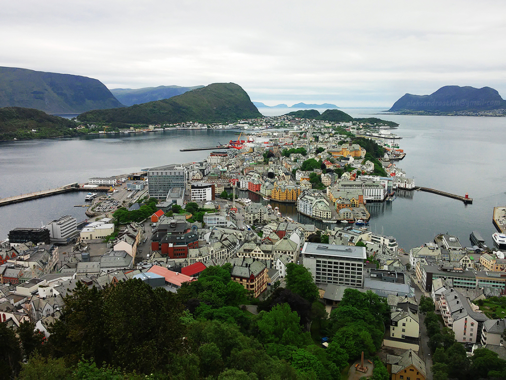 Mimo przelotnych opadów decyduje się na relaksacyjny trekking po wzgórzu, które jest miejscem "niedzielnych" spacerów miejscowych. Po zejściu ze szlaku, robię szybkie zakupy i udaje się do mieszkania. UWAGA!!! (Rybne specjały są tańszę niż w Polsce. W centrum miasteczka, przy stacji benzynowej, znajduje się sklep "Fisketorget", gdzie kupisz świeżą rybę. Godz. otwarcia sklepu na stronie http://www.fisketorget-aalesund.no. Alkohol w sob.kupisz tylko do 18:00, w tygodniu do 20:00.)
