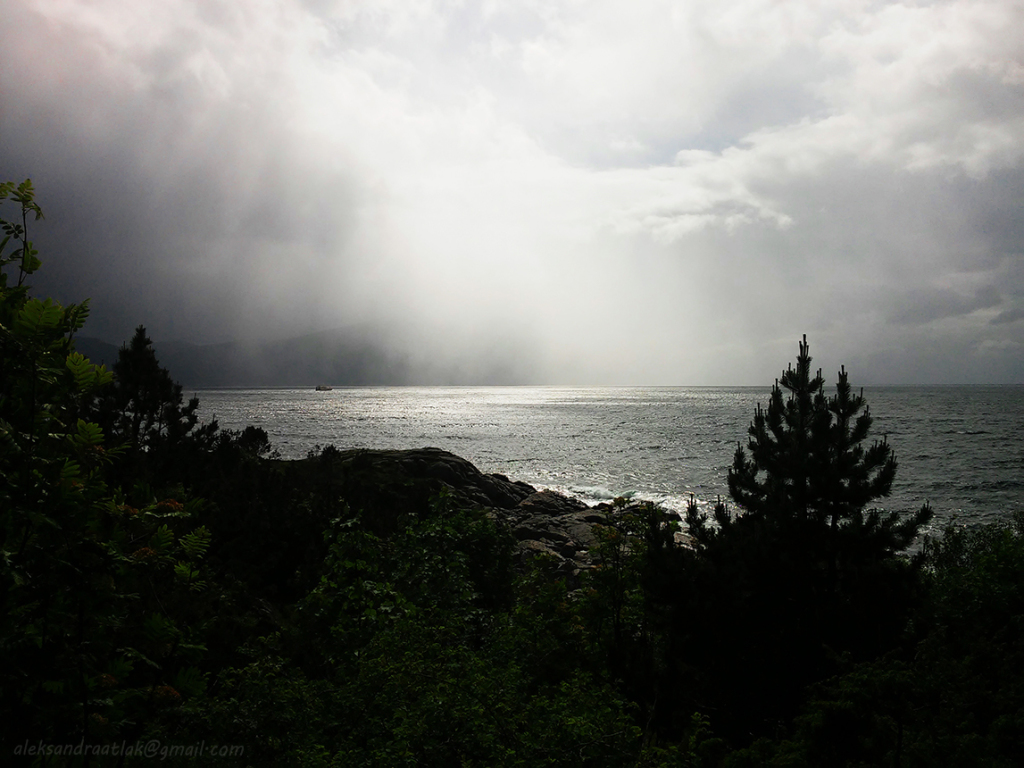 Opadająca mgła odkrywa "bramę na Atlantyk" (wyspy Godoy i ta druga;-), tworzą coś w rodzaju bramy). Obecność oceanu przeraża i fascynuje.
