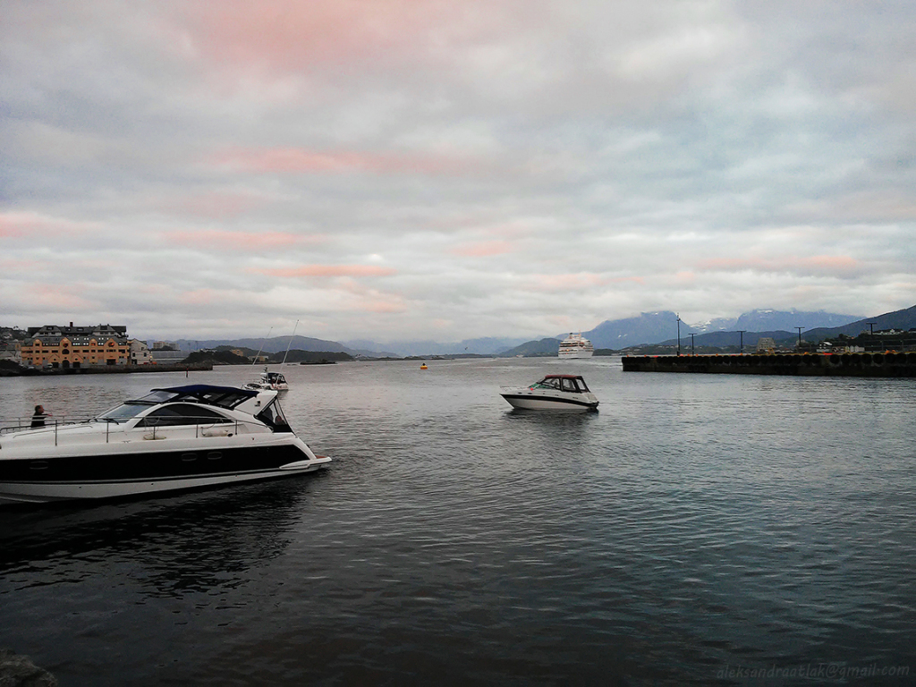 W oczekiwaniu na autobus powrotny korzystam z uprzejmości pewnego przemiłego pana, który proponuje podwózkę. Sven, jest fotografem amatorem, mieszka na sąsiedniej wyspie, Valderoya. Robi przepiękne zdjęcia, odbitki których dostaję na pamiątkę. O 21:55 wylatuje z jasnego Alesund. Bliżej północy samolot wlatuje w panujący na kontynencie mrok.