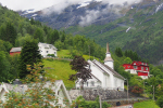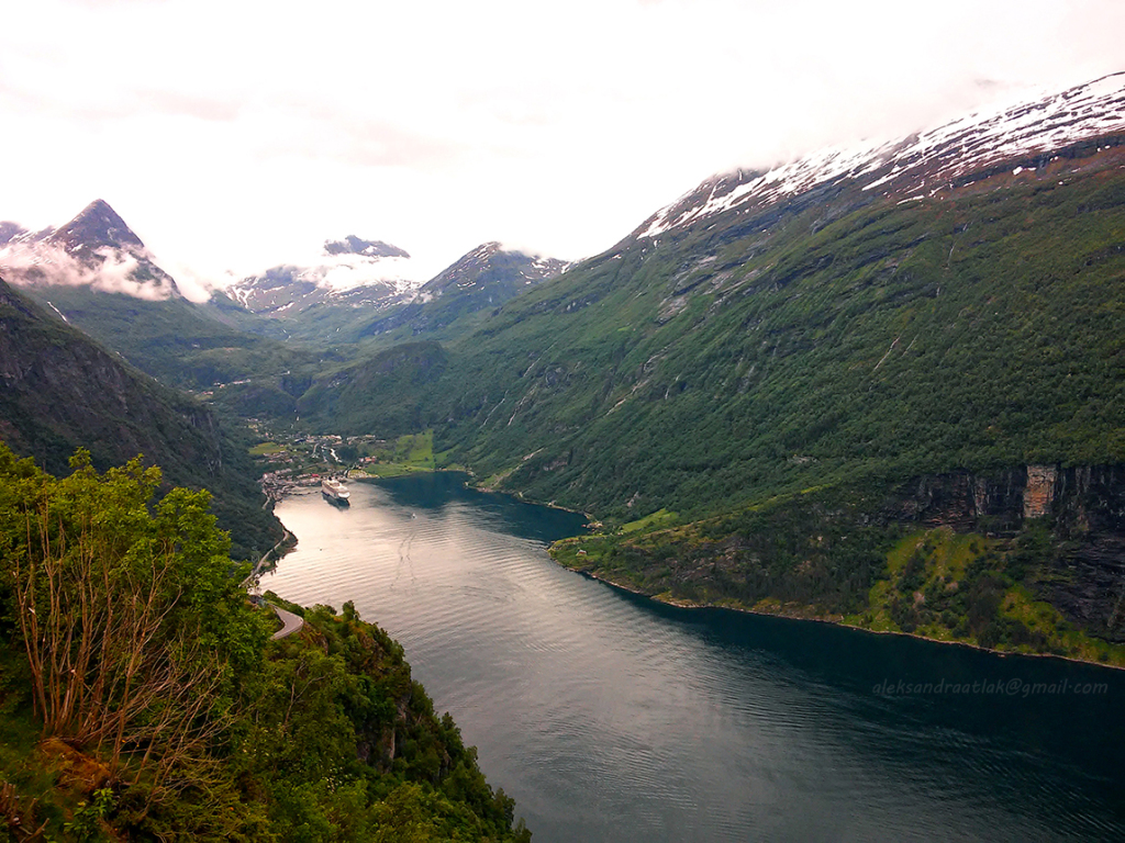 16.06 Godzina 08:50 Pobudka. I wcale nie budzi mnie brzask;-) Oficjalnie urlop czas zacząć. Jeszcze raz sprawdzam pogodę na stronie www.yr.no i ruszam w podróż zobaczyć Geirangerfjord. Kupuję bilet w biurze informacji turystycznej, która znajduje się w samym centrum miasteczka. Zakupu można dokonać również na stronie: www.visitalesund.com. Tu też można sprawdzić rozkład jazdy z dokładnie określonymi czasami przejazdów. Koszt przejazdu na trasie Alesund - Geirangerfjorden - Alesund to 881NOK. Sama droga do Hallesylt, miasteczka "przesiadkowego", skąd odpływa prom bezpośrednio do Geirander, jest przygodą. Mijamy liczne fjordy, małe miasteczka, usytuowane na zboczach wzniesień a tym cudom natury towarzyszą surowe szczyty Alp Sunnmore.
